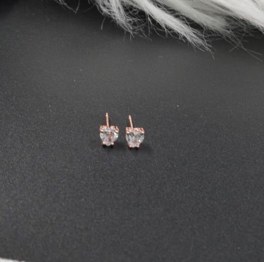 Arete Topo Corazón Blanco Diamante Rosa