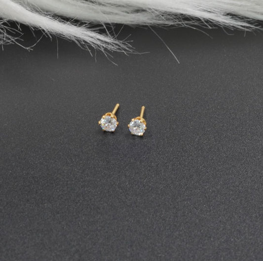 AHORRA 38%Arete Topo Circular Blanco Diamante Dorado