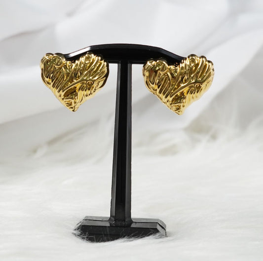 AHORRA 46%Arete Rodio Corazón Rayado Dorado