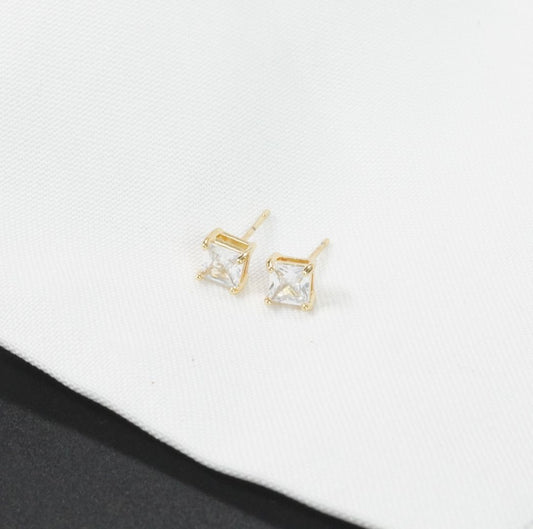 AHORRA 38%Arete Topo Cuadrado Blanco Diamante Dorado