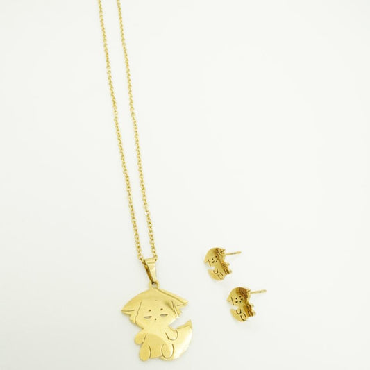 AHORRA 43%COMBO CADENA+DIJE+ARETE ECO GATITO DORADA