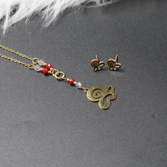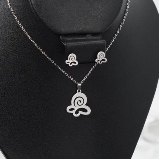 COMBO CADENA+DIJE+ARETE ECO MARIPOSA ESPIRAL PLATEADA