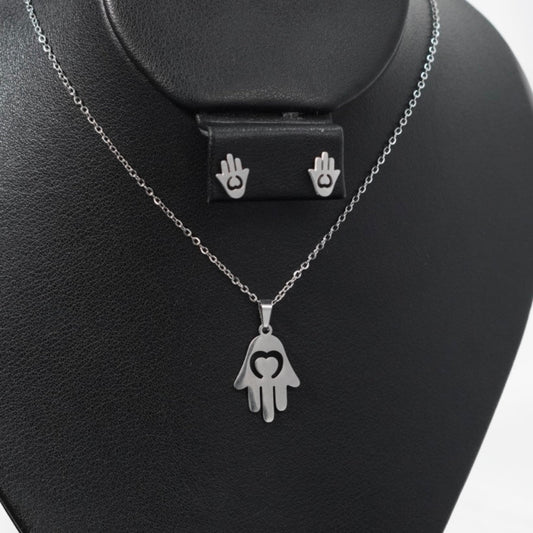 AHORRA 43%COMBO CADENA+DIJE+ARETE ECO MANO PLATEADA