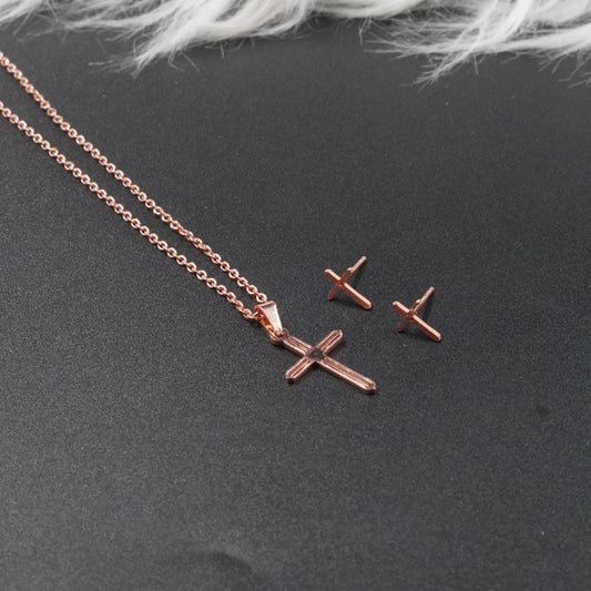 AHORRA 43%COMBO CADENA+DIJE+ARETE ECO CRUZ ROSADA