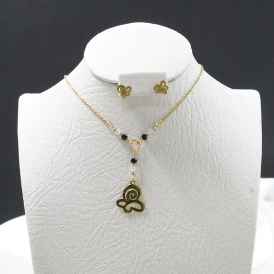 COMBO COLLAR + ARETE CORBATIN MURANO MARIPOSA NEGRO