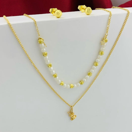 COMBO CADENA+DIJE+ARETE RODIO DOBLE FIGURA PERLA