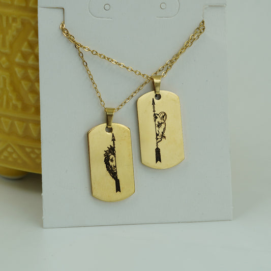 COMBO PAREJA CADENA+DIJE LEON PLACA GRANDE PLATEADO