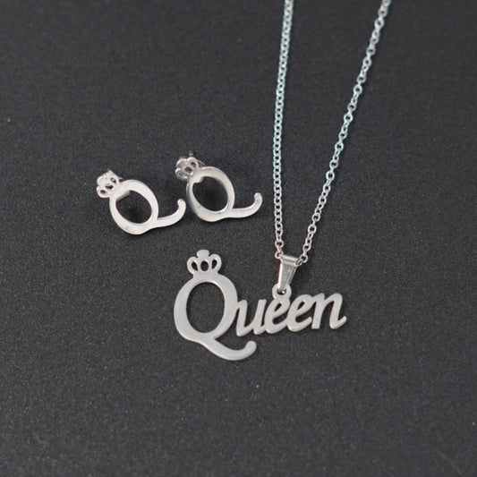 AHORRA 43%COMBO CADENA+DIJE+ARETE ECO QUEEN PLATEADO