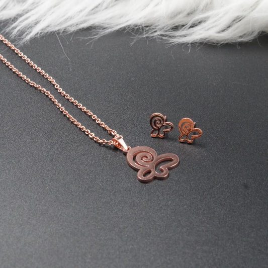 COMBO CADENA+DIJE+ARETE ECO MARIPOSA FLOR ROSADO