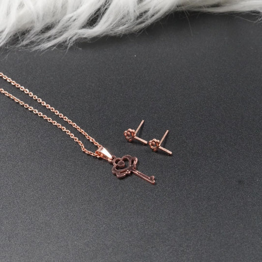 AHORRA 43%COMBO CADENA+DIJE+ARETE ECO LLAVE ROSADO