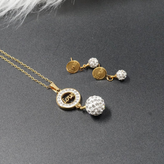 COMBO CADENA+DIJE+ARETE BOLA DE FUEGO LOVA DORADO
