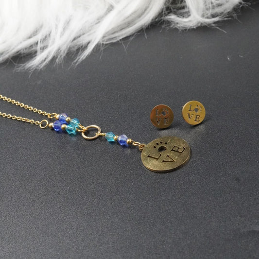 COMBO CADENA+DIJE+ARETE CORBATIN MURANO LOVE AZUL