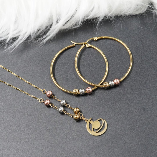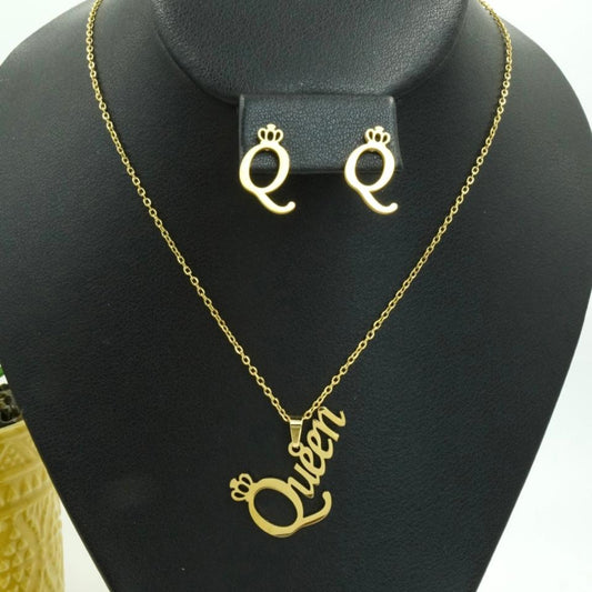 AHORRA 43%COMBO CADENA+DIJE+ARETE ECO QUEEN DORADA