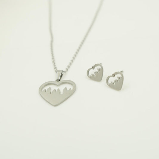 COMBO CADENA+DIJE ECO CORAZON CON FUEGO PLATEADO