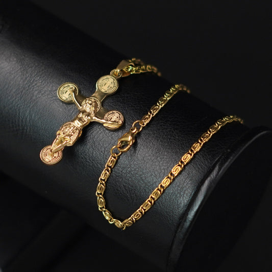 AHORRA 43%COMBO CADENA CUBANA+DIJE SAN BENITO DORADO