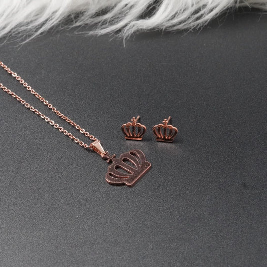 AHORRA 43%COMBO CADENA+DIJE+ARETE ECO CORONA ROSADO